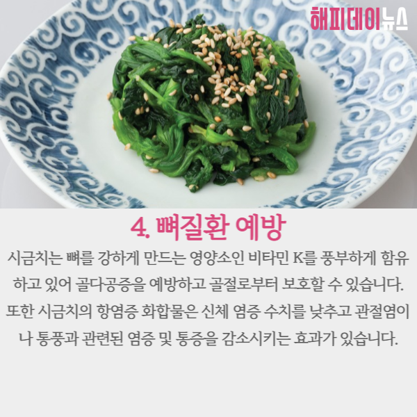 시금치에는 뼈를 강하게 만드는 영양소인 비타민K가 풍부하게 함유되어 있는데요.