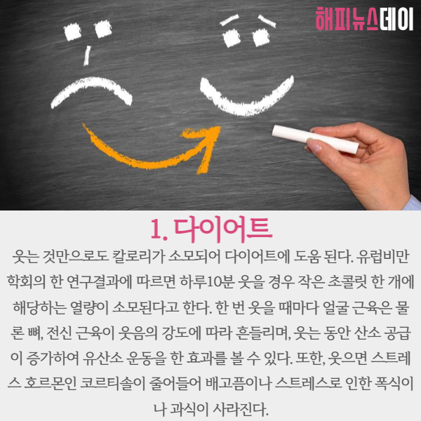 특별한 운동을 하지 않고 자주 웃는 것만으로도 칼로리가 소모되어 다이어트에 도움이 됩니다.