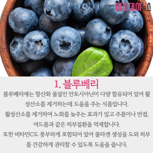 오늘은 섭취하는 것만으로 피부노화를 늦춰주는 음식 5가지에 대해 소개해 드리겠습니다.
